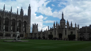 Today is Saturday and we decided to join the Cambridge day excursion with Concorde. It took us 2 hours to get there by bus and it's worthy a visit. We went in King's College and visited its stunning chapel. After that, we took a walk around...we admired all the buildings, the round Church, the bridges that cross over the Cam river, the punting boats (they do it differently from the Oxford ones). In fact, Cambridge university, which is spread all over the old city center was founded by former Oxford professors who disagreed with the rest and they decided to build another one in Cambridge in the 15th century. That is why this rivalry between both universities exists. We had a little bit of everything when we talk about weather: sunshine, heavy storm for one hour and a half and sunshine again but, this is what we can expect in England!!!